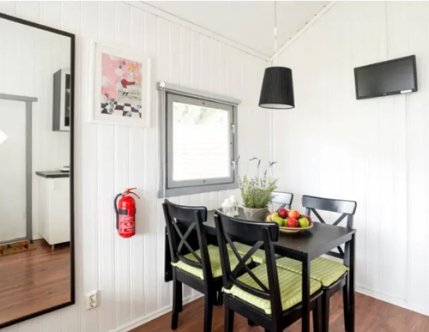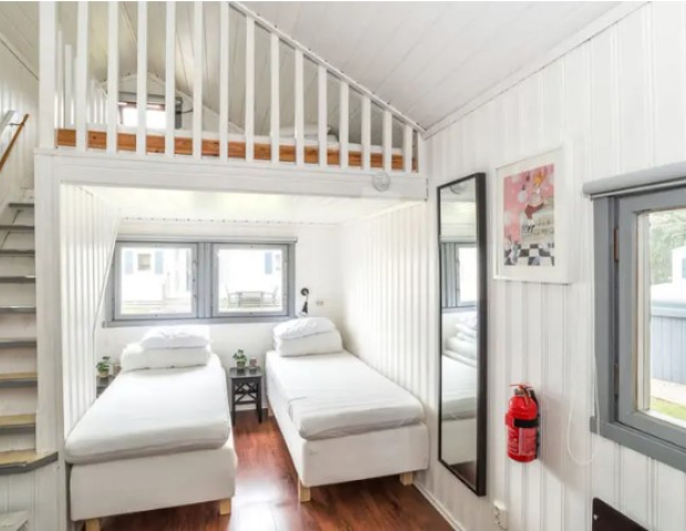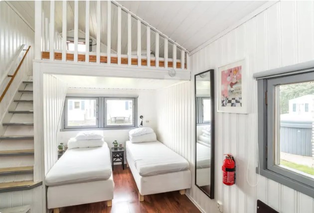 I samarbete med First Camp erbjuder Stay Smart stugor i Helsingborg.Stugan passar perfekt för det mindre företaget eller för anställda som behöver ett enkelt och funktionellt boende. På det mysiga sovloftet finns två 80 cm bäddar, och ytterligare två bäddar finns i allrummet på nedre plan. Stugan är utrustad med kyl, kokplatta och kaffebryggare. Dusch, toalett och kök finns i närliggande servicehus med bekväm tillgång.