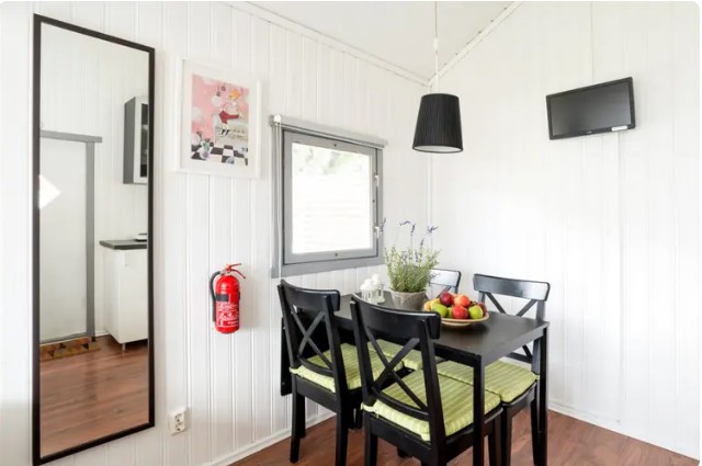 Stuga 41 är en mysig grå stuga i ett plan, perfekt för familjer eller små grupper som vill njuta av en avkopplande vistelse. Stugan har totalt fyra bäddar, med två bekväma enkelsängar i sovrummet samt en bäddsoffa i allrummet som rymmer ytterligare två personer. Allrummet fungerar som både vardagsrum och matplats, där ni kan samlas för spel, filmkvällar eller mysiga måltider. Den ljusa och öppna planlösningen skapar en hemtrevlig atmosfär, och stugans läge erbjuder nära till naturupplevelser, vandringsleder och andra aktiviteter.